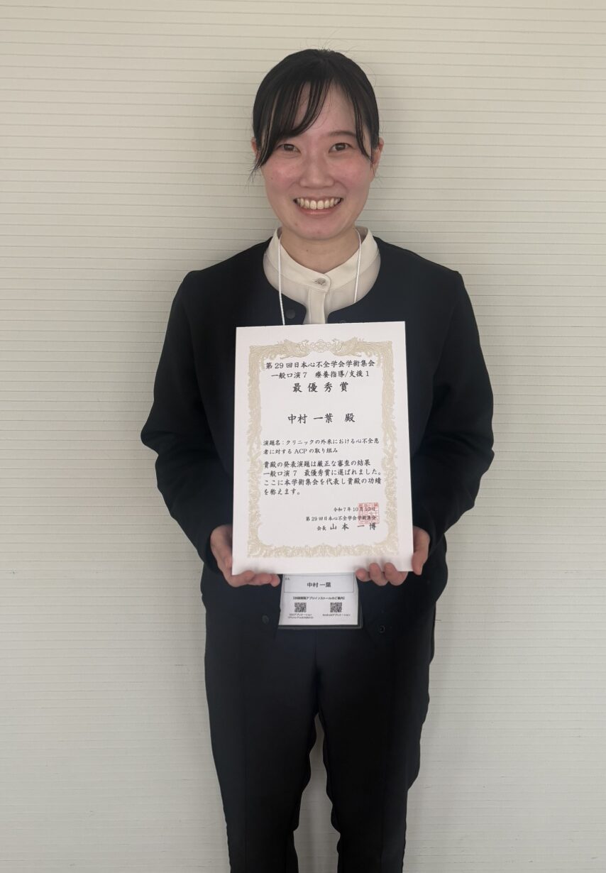 そして見事に看護師の中村が最優秀演題賞を受賞しました。おめでとうございます!
